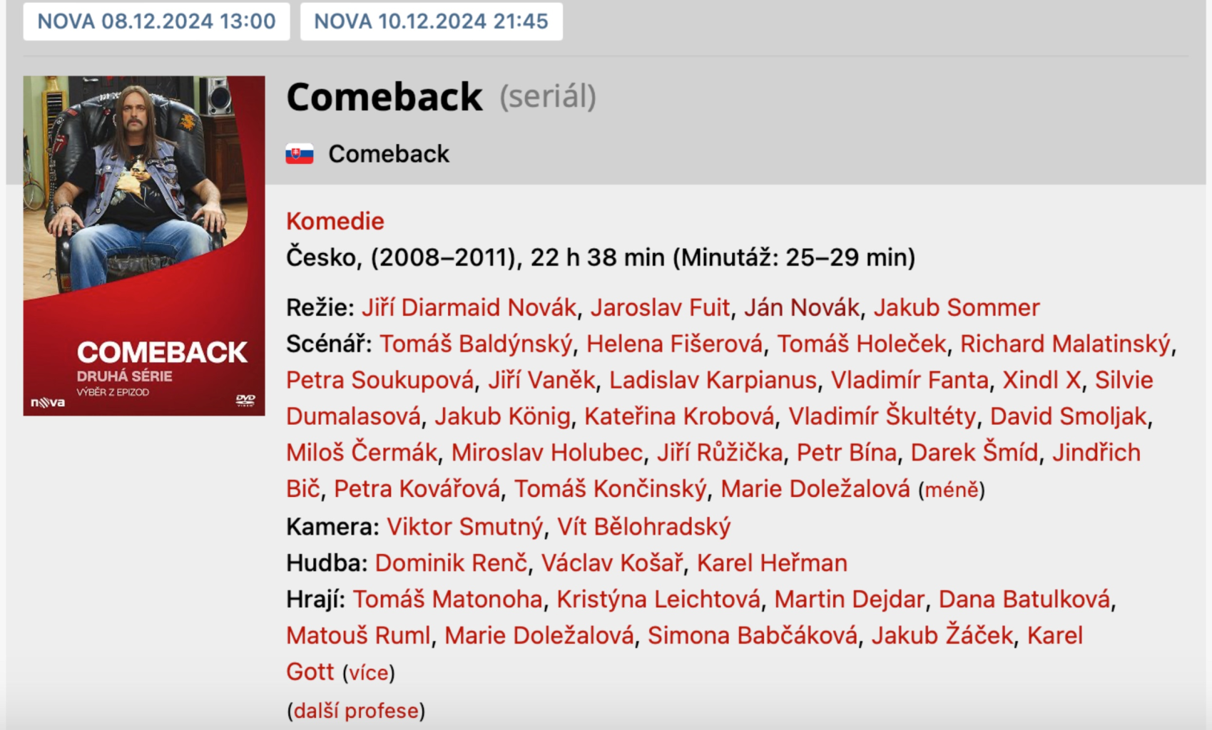 scenárista seriálu spoluautor dílů: Kytarový blues (S01E35) Láska na grilu (S01E32) Krok do neznáma (S01E20) Matka (S01E18) Brno je zlatá loď (S01E12) Cesty Boží jsou nevyzpytatelné (S01E10) Kuchařská celebrita (S01E06) Divoká jízda (S01E05) Nabídka, která se neodmítá (S02E03) Stará trouba (S01E02) Svoboda (S01E01)