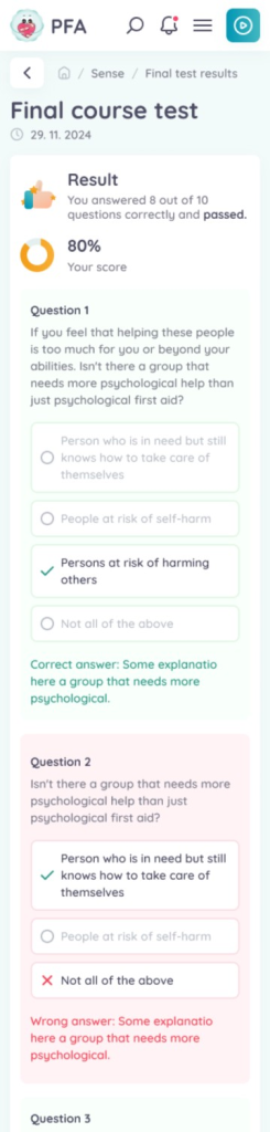 Pro více klientů v Asijském trhu jsme vytvořili e-learningovou platformu zaměřenou na psychologickou první pomoc (psychological first aid), která je speciálně navržena pro hluchoněmé osoby. Tento projekt měl za cíl poskytnout přístup k důležitým informacím a dovednostem v oblasti krizové intervence a podpory, přičemž byl plně přizpůsoben potřebám cílové skupiny. Platforma využívá interaktivní videa, tlumočení do znakové řeči a další přístupné formáty, aby byla dostupná a srozumitelná pro osoby se sluchovým postižením. Tento e-learning nejen že zvyšuje povědomí o psychologické první pomoci, ale také umožňuje hluchoněmým lidem získat praktické dovednosti, které mohou využít v krizových situacích, čímž přispívá k jejich bezpečí a duševní pohodě.
