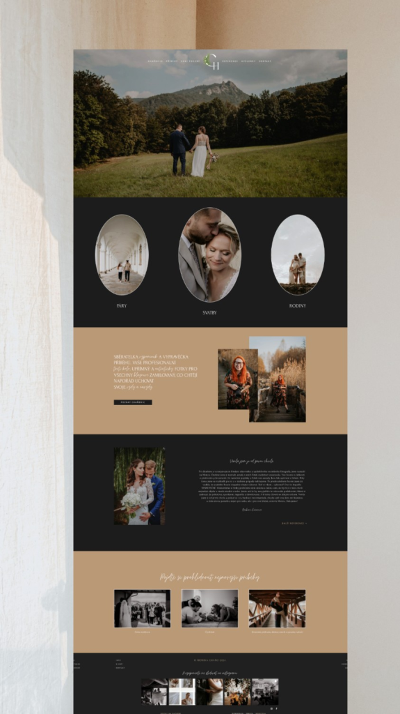 Web a brand pro svatební fotografku Sabinu Kolářovou Reference: Po její práci jsem pokukovala již dlouho a věděla jsem, že pokud budu chtít jednou web, bude to určitě od ní. Takže jsem si splnila takový můj malý, velký sen. Líbí se mi, jak dělá weby svěží, moderní, jednoduché a přitom bohaté na informace. Terez mi vždy vše srozumitelně vysvětlila, doporučila, navrhla a především opravdu rychle komunikovala. Celý web udělala přesně podle mých představ – ba naopak, snad hezčí, než jsem si myslela, že by mohl být. Především Terezce děkuju za její neskutečnou trpělivost. Nikdy mne neuháněla s podklady a dala mi dostatek prostoru.