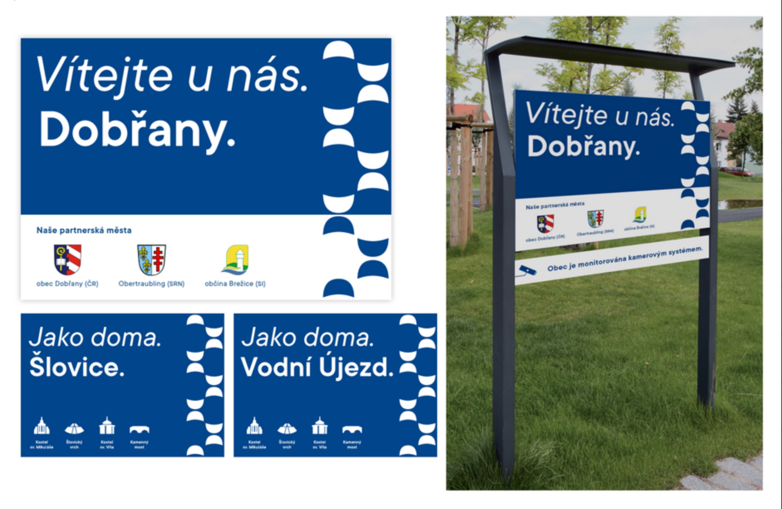 Městu Dobřany jsme pomáhali s vytvořením značky a vizuální identity. Před zahájením celého projektu proběhla důkladná analýza potřeb města a existujícího způsobu komunikace. Výsledkem spolupráce je jednotný vizuální a komunikační styl města. Ten zahrnuje, kromě drobné aktualizace původního loga, také nový městský slogan, tonalitu komunikace a podznačky pro městské části a organizace. Všemi výstupy se také táhne nově navržená obsahová linka „podobřansku“. Dále jsme vytvořili systém podznaček pro různé části města a organizace pod městskou správou a celou vizuální identitu města, včetně městské série ikon. Konkrétními výstupy, které se postupně realizují, jsou různorodé tiskoviny, městský navigační systém, vjezdové cedule do města, označení zastávek veřejné dopravy, polepy vozového parku, ale i propagační předměty nebo branding sociálních sítí.